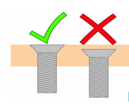 正确拧紧平头螺钉和过度拧紧的平头螺钉